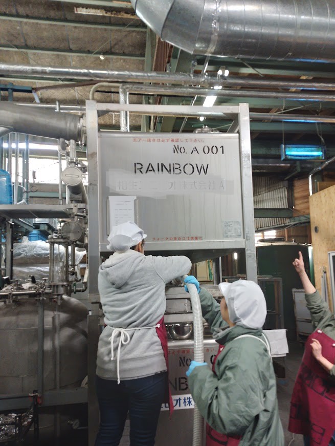 もち米と焼酎、麹を混ぜる撹拌機の調整、焼酎コンテナとポンプの接続確認!