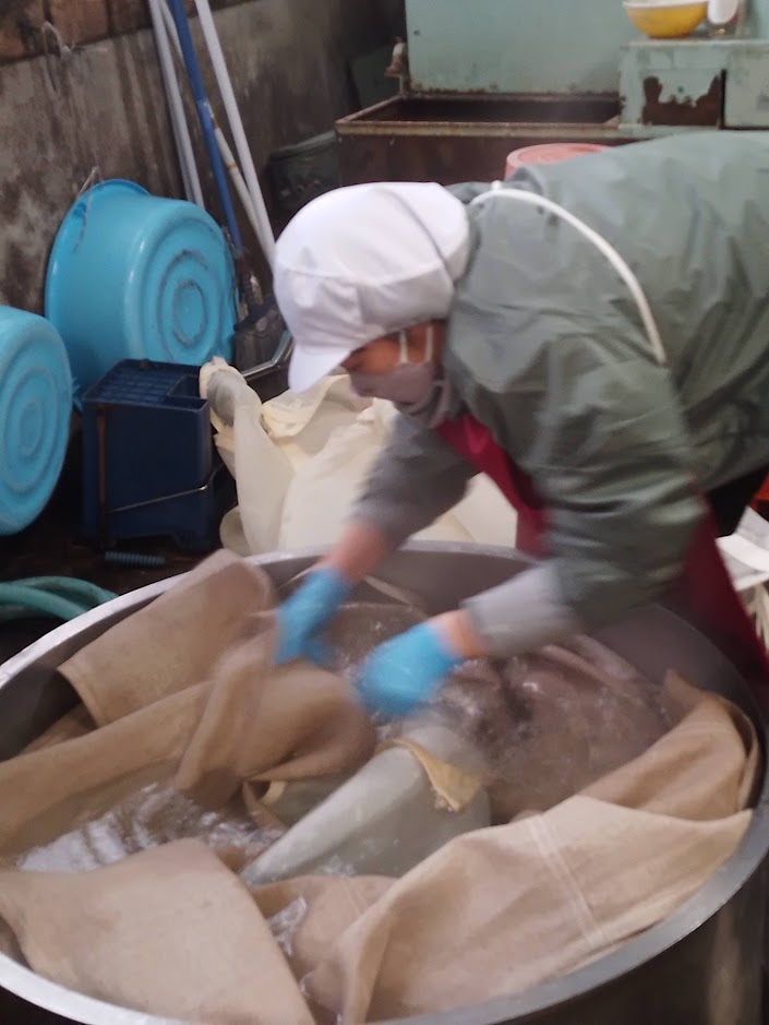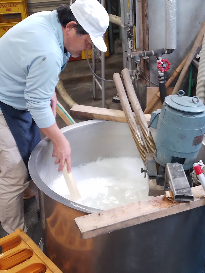 先週後半から京都から学生のそらちゃんが研修に来て、泊まり込みでみりん仕込みを体験しています。